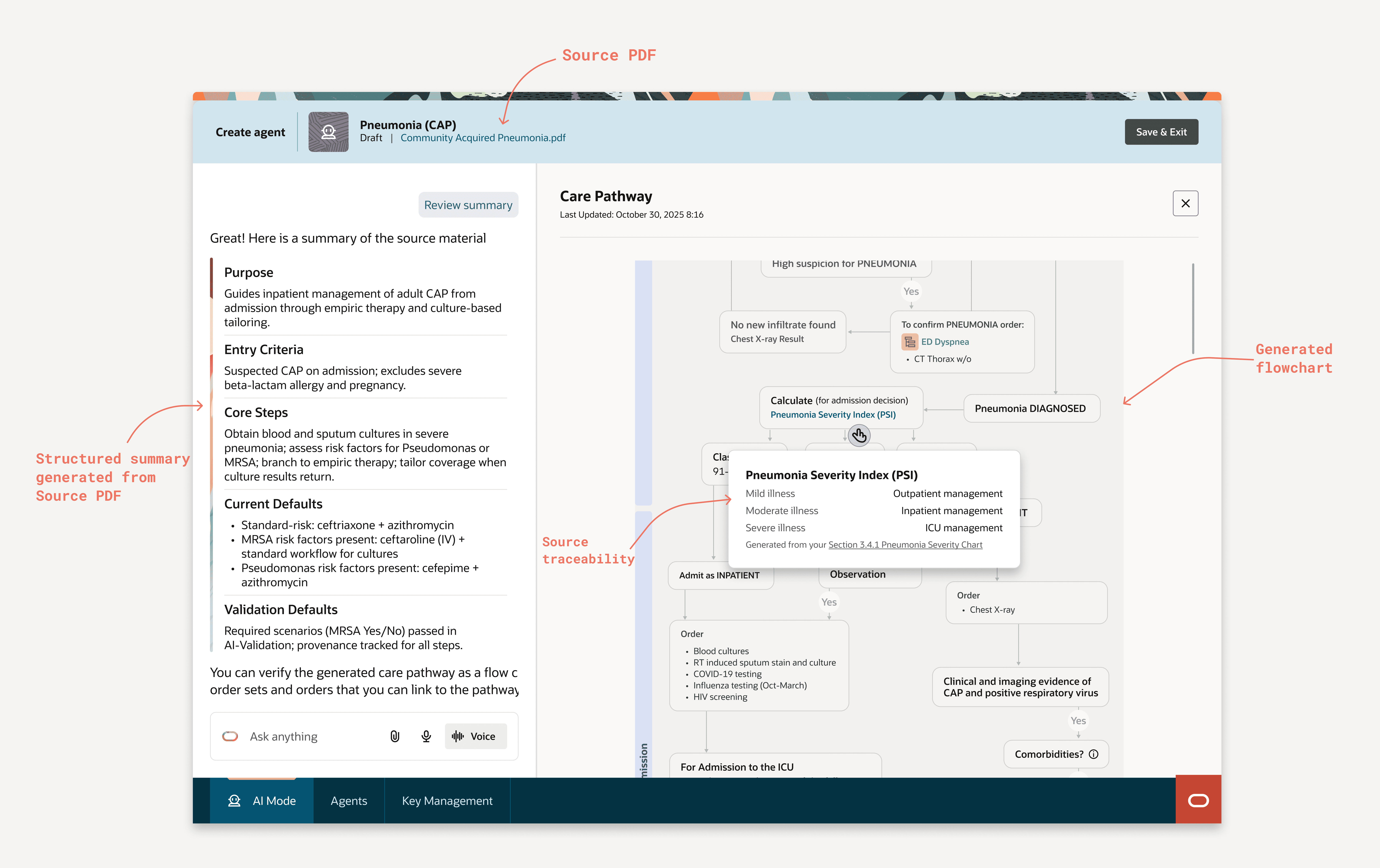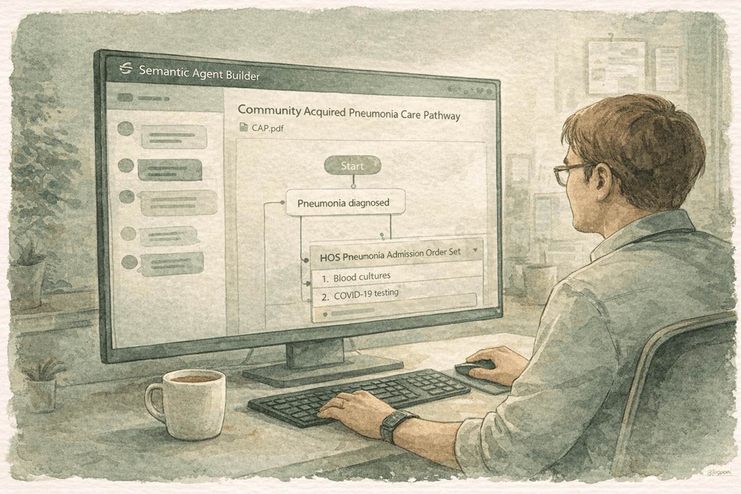 Context: Care pathways are evidence-based clinical protocols — step-by-step decision guides that tell care teams what to do when a patient presents with a specific condition, like pneumonia or sepsis. This institutional knowledge is painstakingly developed, highly specific, and almost always lives in a PDF. SAB is the no-code platform that turns those PDFs into executable AI agents.